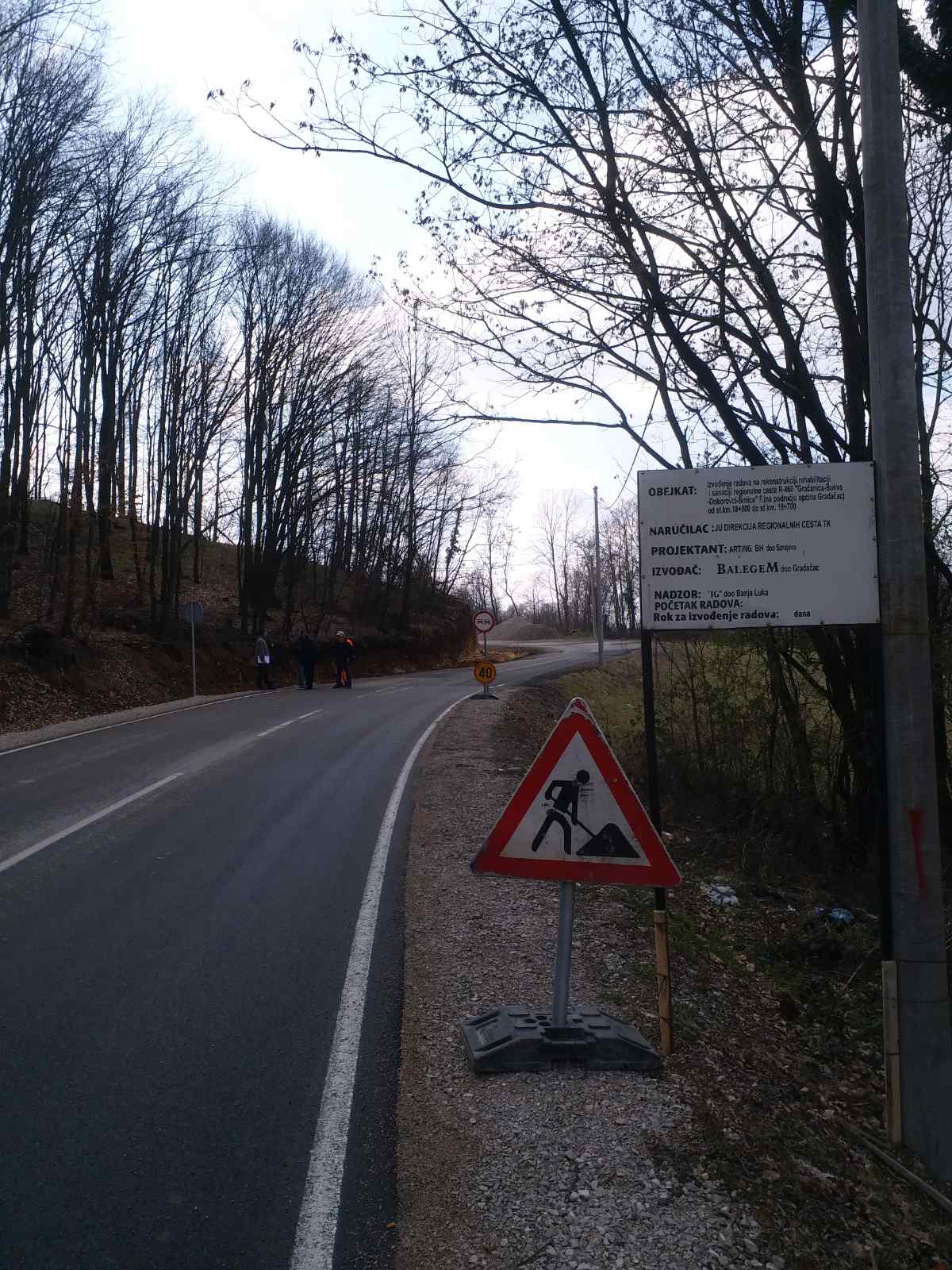 Izvođač radova Balegem DOO Gradačac proteklih dana uveden je u posao na rekonstrukciji dijela regionalne ceste R-460 “Gračanica-Bukva-Doborovci-Srnice” na opodručju Srnica Gornjih (Gradačac). Radi se o projektu čija je vrijednost 800.000,00 KM, dužina dionice je 900 metara, rok za završetak je 60 kalendarskih dana. Stručnotehnički nadzor nad izvođenjem radova vršiti će IG Banja Luka.